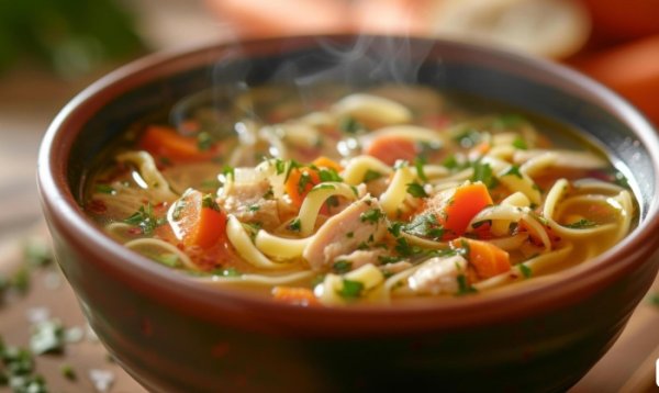 Chicken bone broth is a slow-simmered liquid made by cooking chicken bones (often with a bit of meat still attached) and water over 12 hours. The long cooking time extracts collagen, minerals, and deep flavor from the bones, creating a nutrient-rich broth. This broth is great for soups and other hearty meals