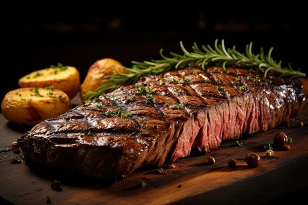 A London Broil is the first cut from the top round. It is a thick top round steak that should be marinated overnight before placing on the grill because it is very lean. It should be left pink inside and sliced thin across the grain for maximum taste and tenderness.